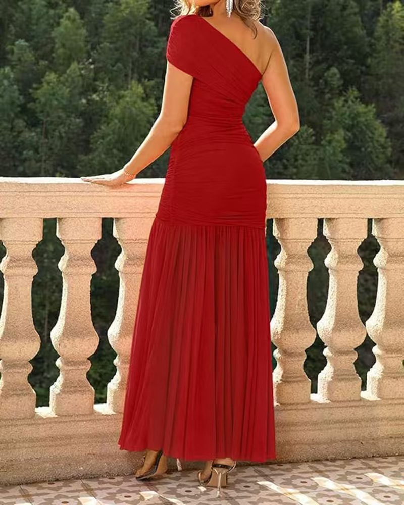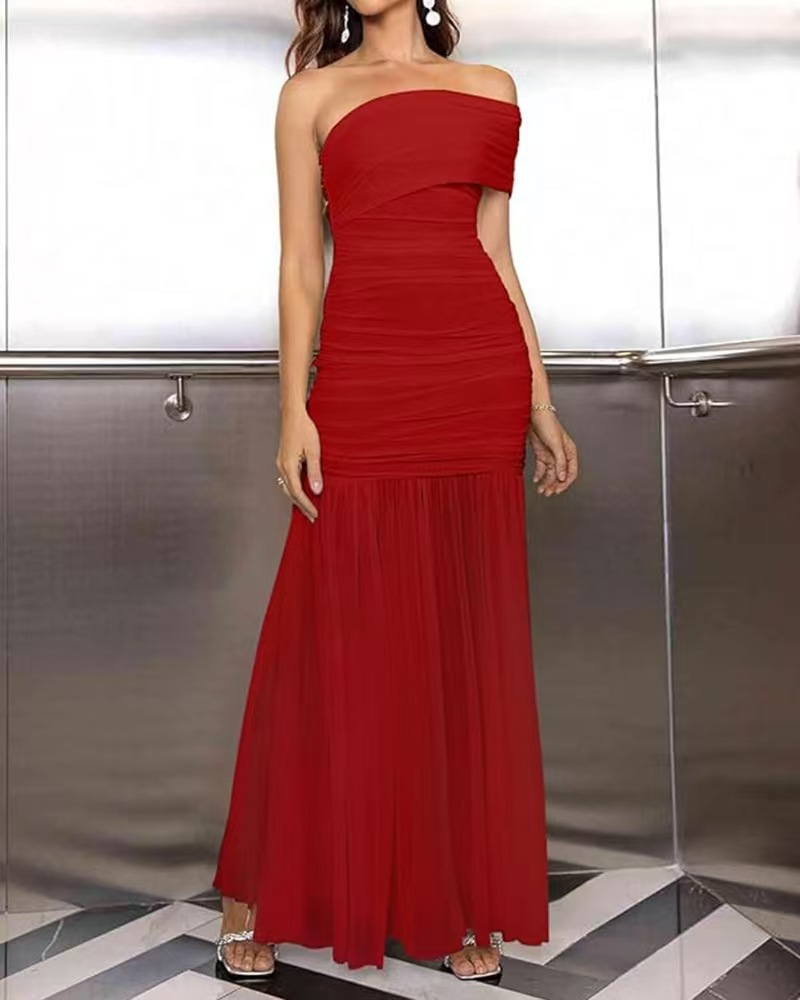 Slant Shoulder Design: Fashionable off-shoulder style with asymmetric collar for a modern look