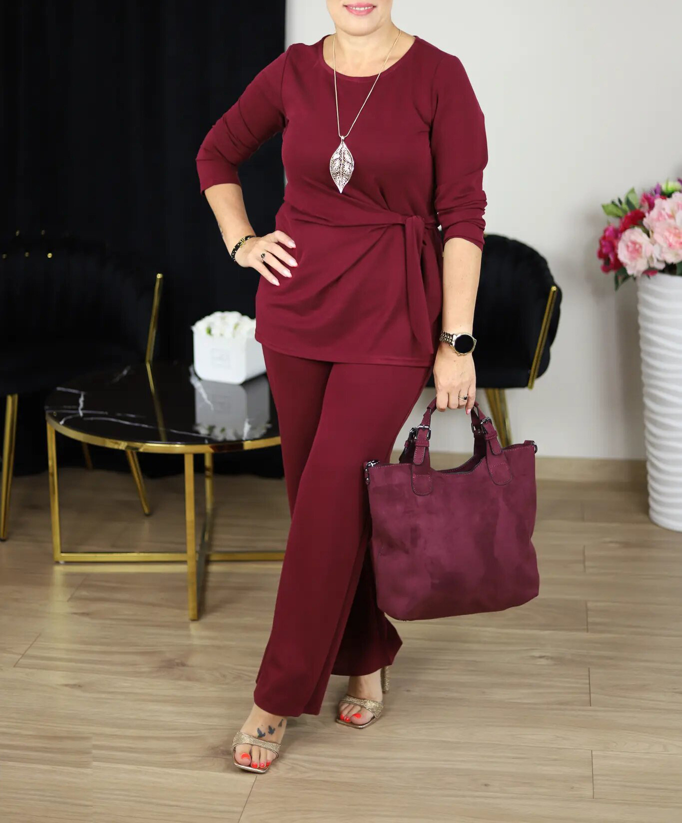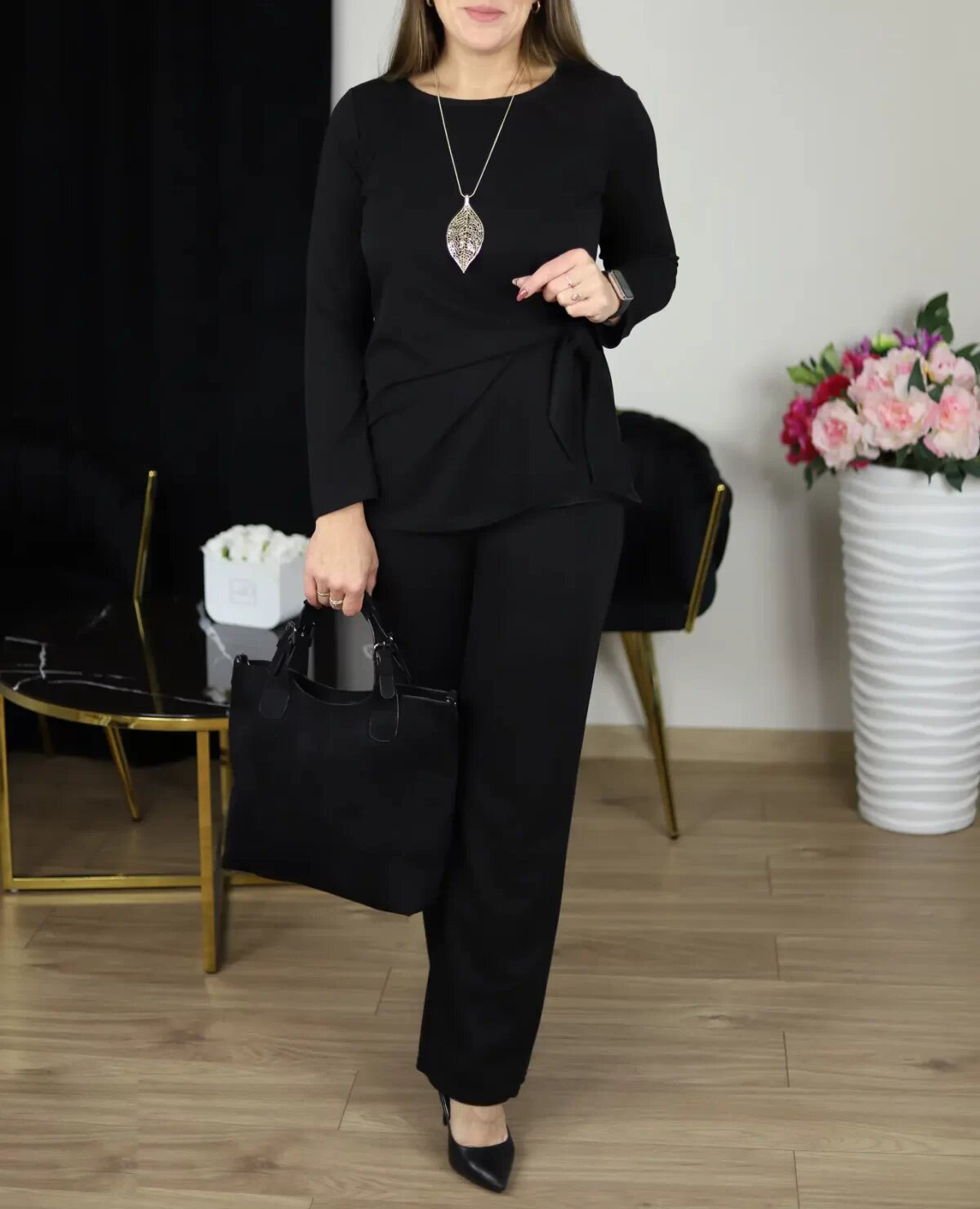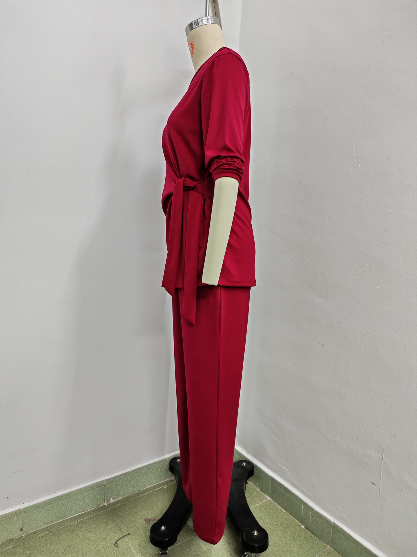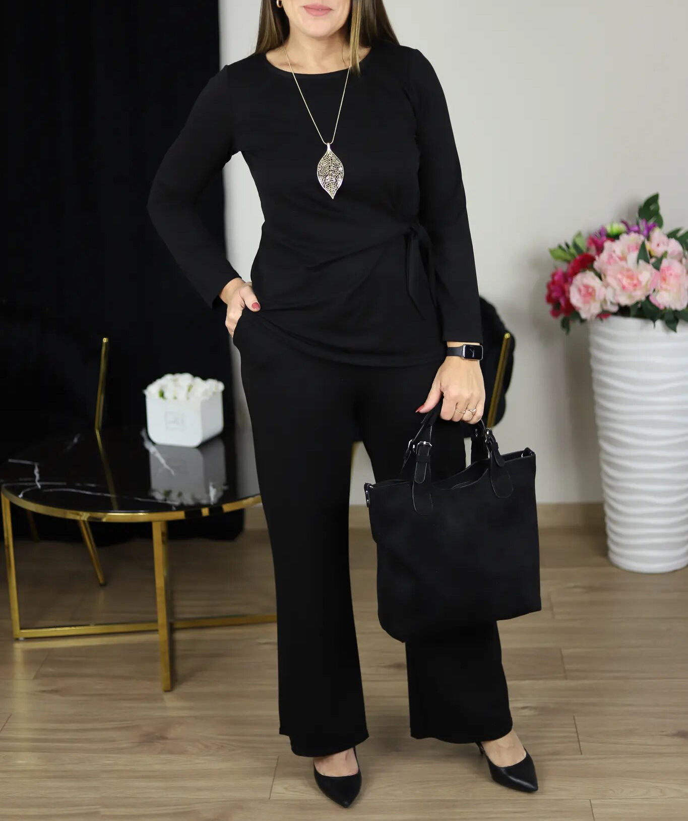 Stylish Design: Trendy three-piece set featuring a round neck top, long pants, and mid-length coat for a fashionable look.