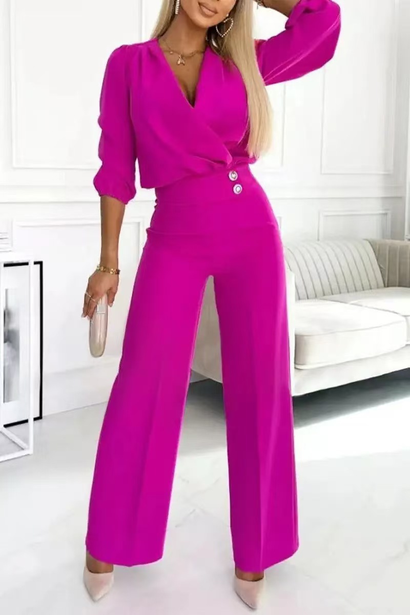 Women's Casual V-Neck Two-Button Pants Suit
