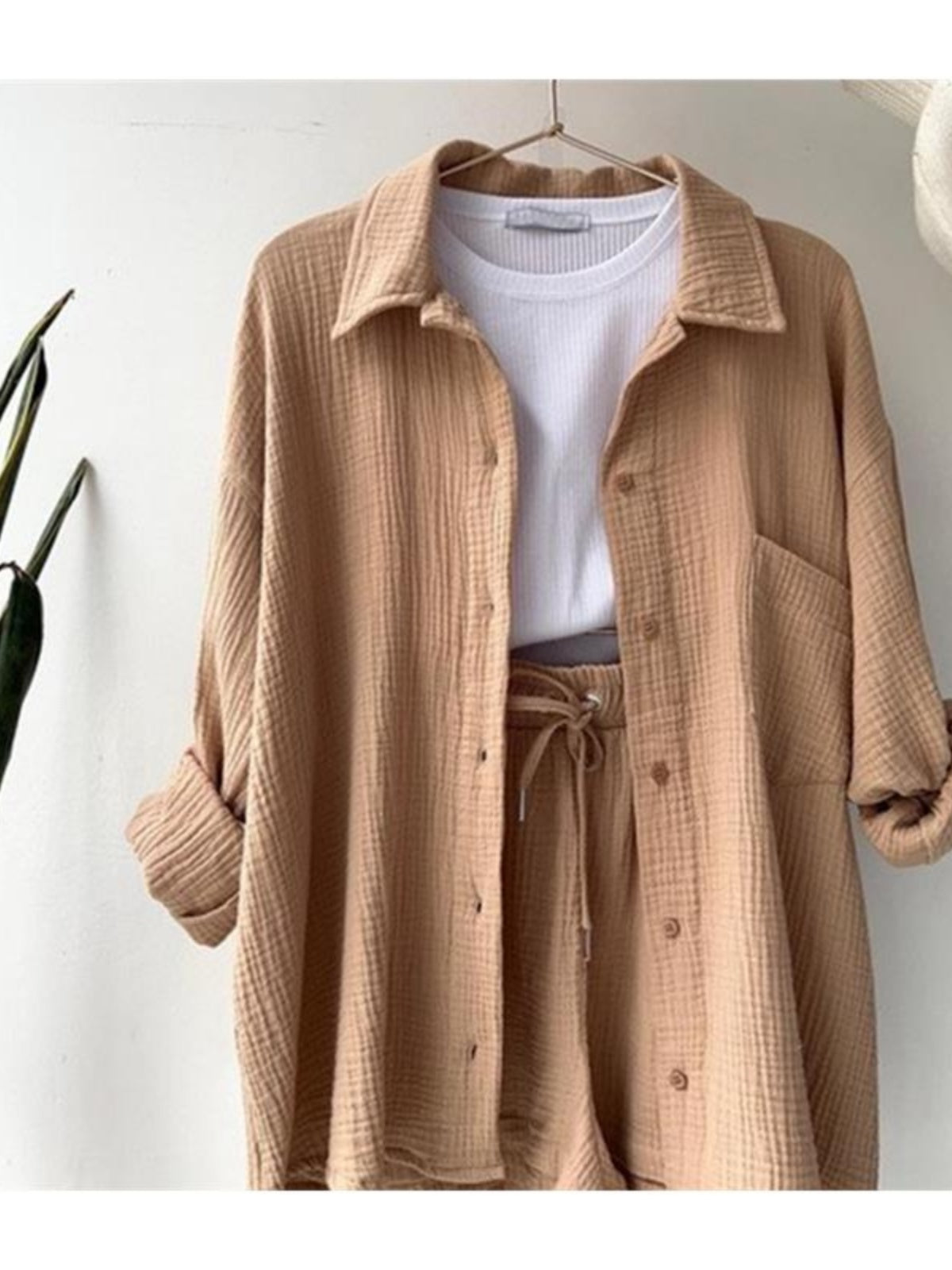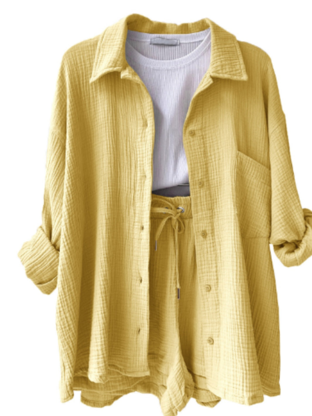 Two-Piece Set: Convenient matching of long sleeve top and shorts.