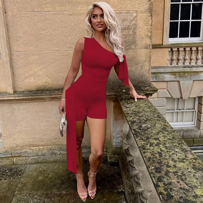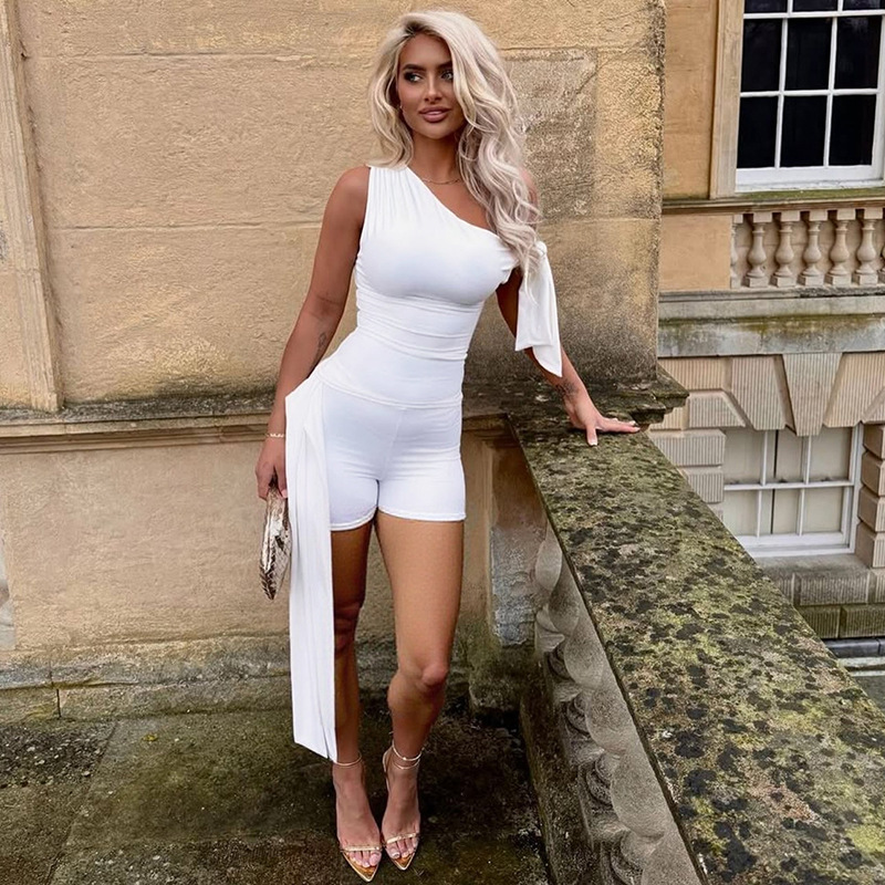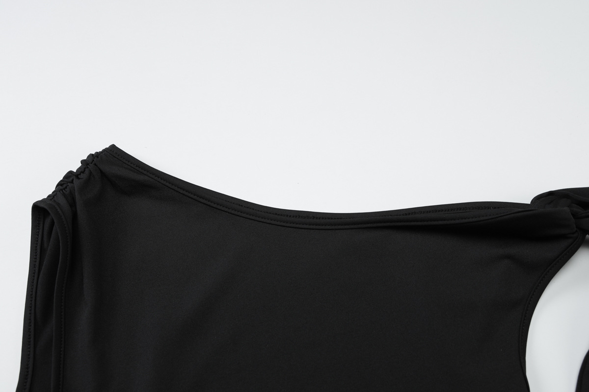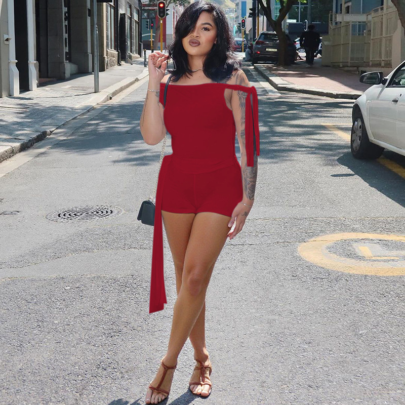 Fashionable Design: Slope collar sleeveless top with lace-up slim shorts for a trendy summer look.