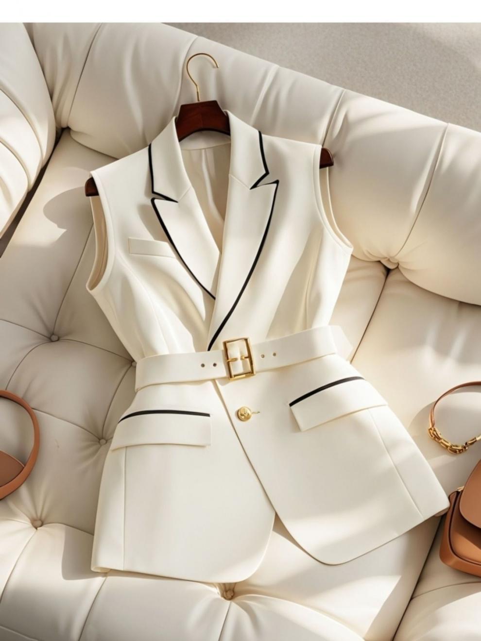 Western Style Design: Elegant and fashionable white vest with a dress collar, perfect for a chic look.